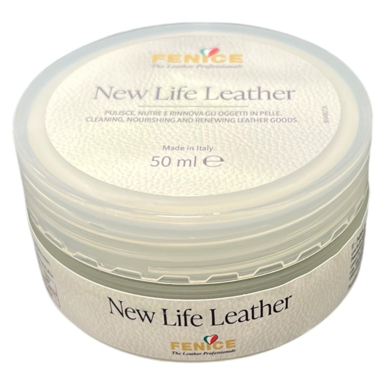 „New Life Leather“ ist eine exklusive Creme, die Reinigung und Pflege kombiniert, um die Lebensdauer Ihrer Lederprodukte zu verbessern und zu verlängern. Die Creme spendet Feuchtigkeit, schützt vor Austrocknung und Rissbildung und trägt dazu bei, das schöne Aussehen und die Flexibilität des Leders zu bewahren.